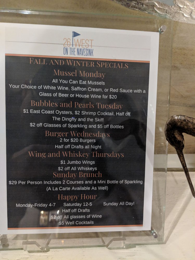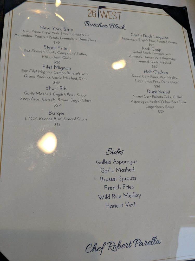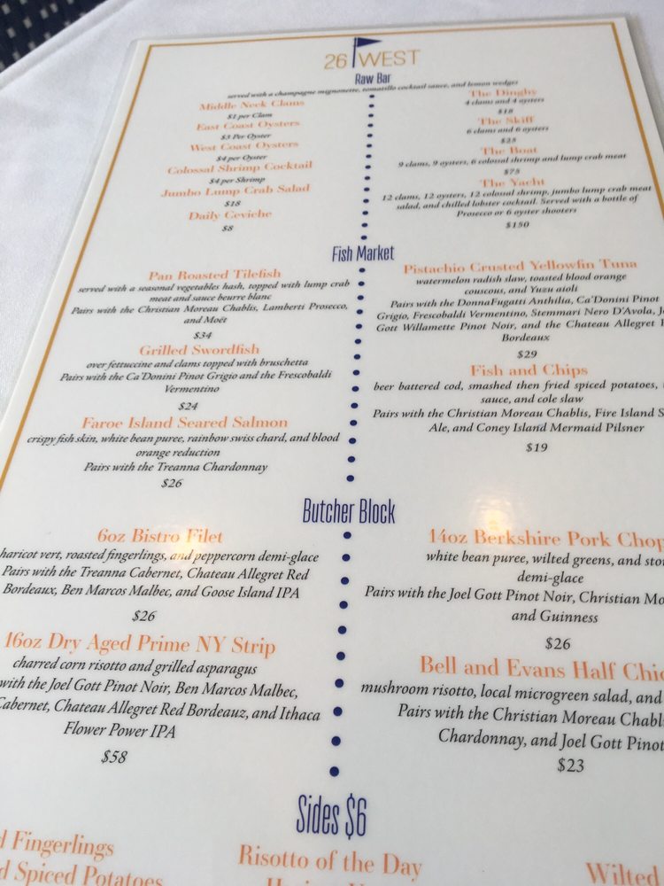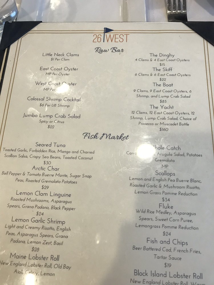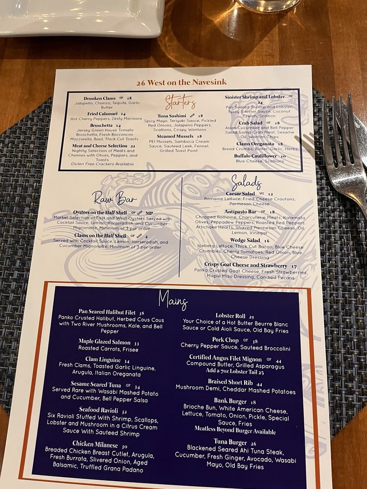 Located in Red Bank, NJ, 26 West on the Navesink offers a sophisticated dining experience with a diverse New American - Seafood menu. This restaurant caters to a wide range of preferences, including vegetarian options, and accommodates various needs with wheelchair accessibility and gender-neutral restrooms. The menu boasts enticing dishes such as the 8 Herb Salmon, Bank Burger, Chicken Milanese, and Clam Linguine. Appetizer options like Blackened Steak Tips, Buffalo Cauliflower, and Charred Octopus are sure to tantalize your taste buds. Customer reviews rave about the impeccable service and picturesque waterfront setting, making it an ideal spot for an evening out or special event. With a full bar, happy hour specials, and a relaxed yet classy ambiance, 26 West on the Navesink delivers a memorable dining experience for all.